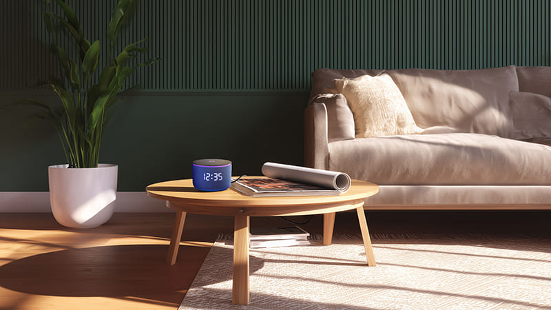 Корпус колонки выполнен из мягкой ткани, приятной на ощупь и лаконично вписывающейся в интерьер. Минималистичный LED-дисплей отображает часы и другую полезную информацию, а кольцевая светодиодная подсветка добавляет живости и эмоциональности общению с устройством. Встроенные микрофоны хорошо улавливают голос даже при работе телевизора, а есть возможность отключить микрофоны при необходимости.