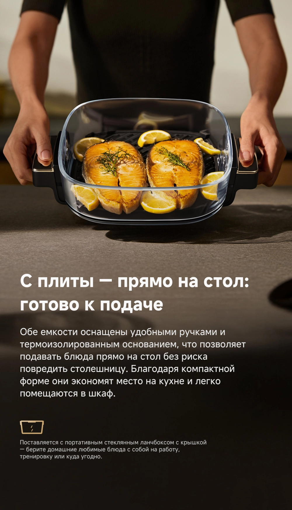 - Портативный стеклянный ланч-бокс с крышкой - 1 шт.