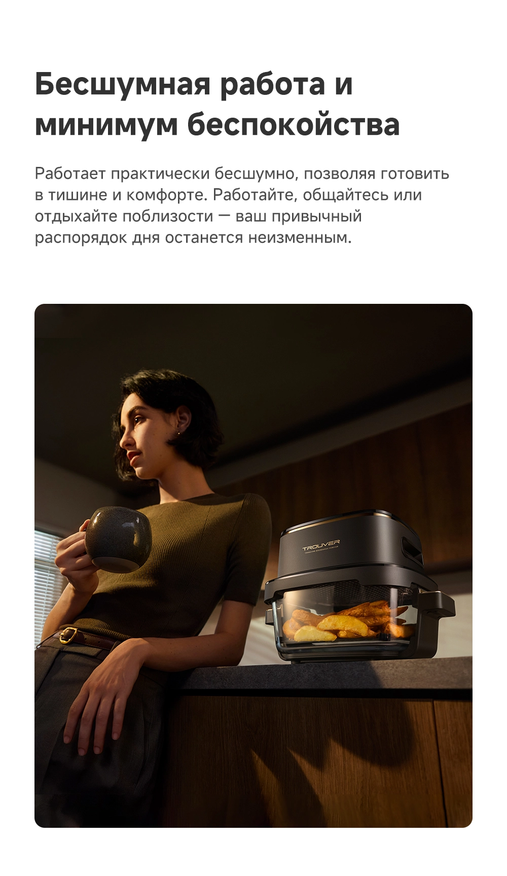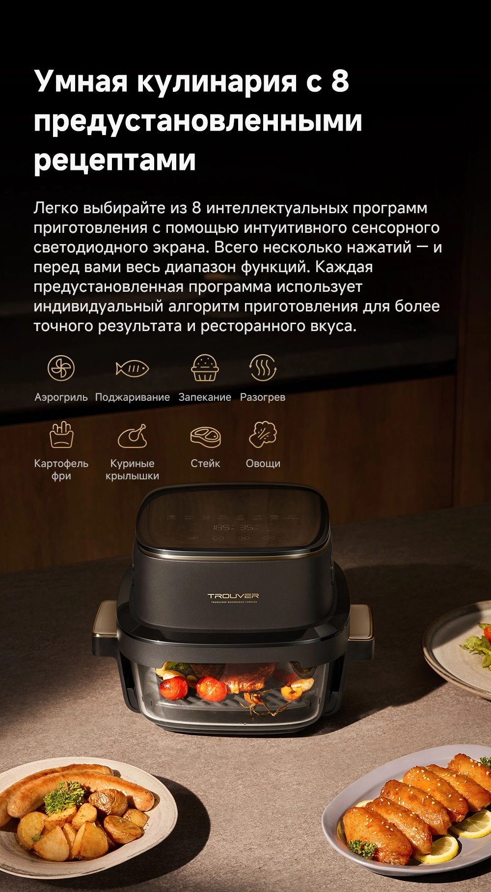 - Описание: тихая работа, точный и равномерный нагрев. Автоматическая приостановка работы при поднятии крышки. Дополнительные принадлежности можно мыть в посудомоечной машине. Инверторный бесщеточный двигатель. 8 предустановленных рецептов. Интуитивно понятный светодиодный сенсорный экран
