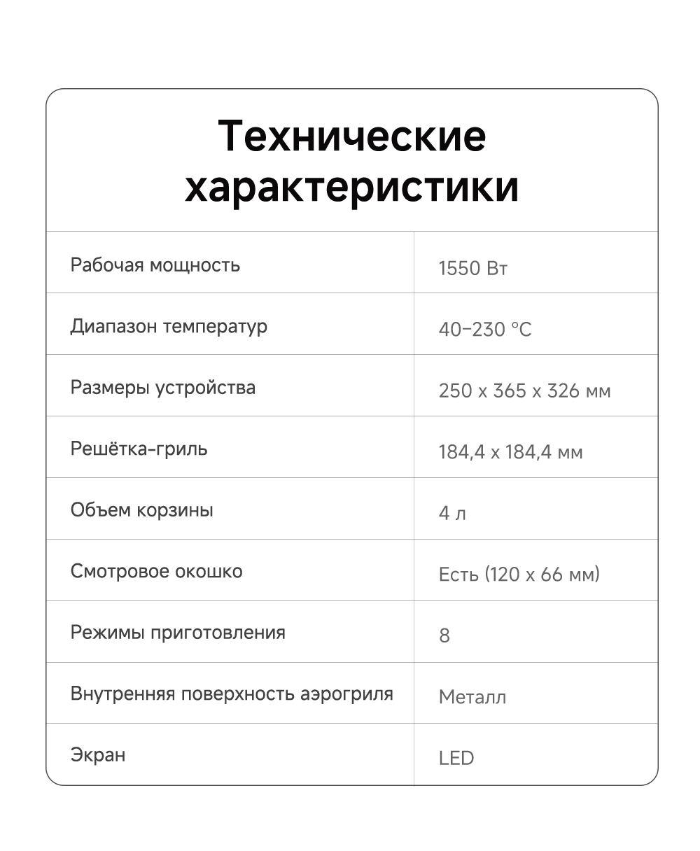 - Тип: аэрогриль (аэрофритюрница)