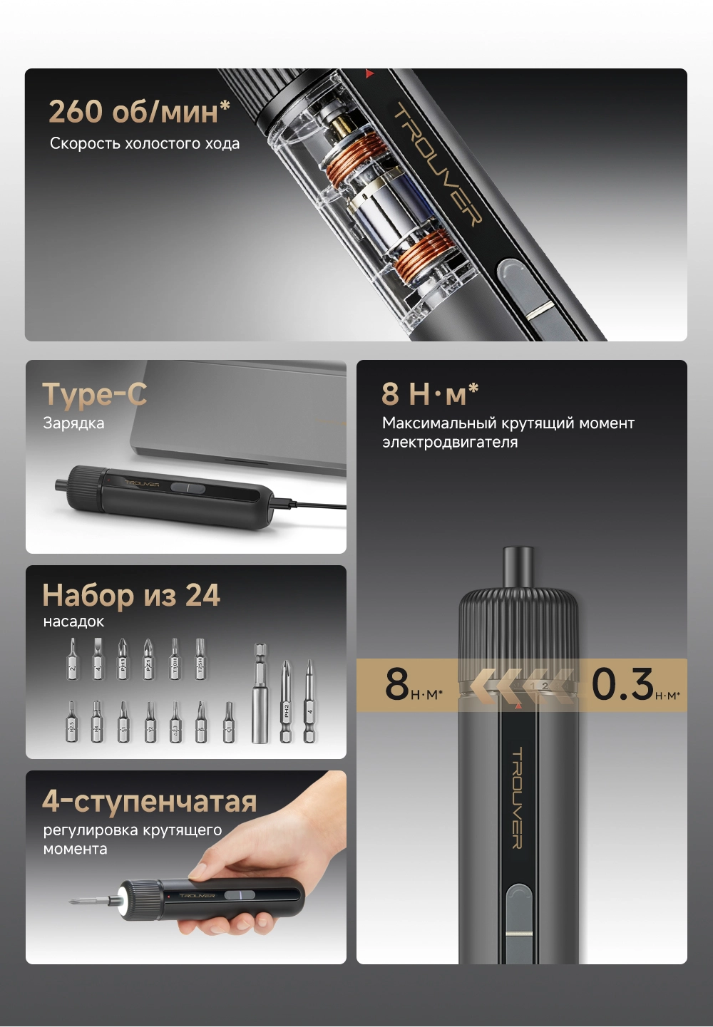 - Регулировка крутящего момента: 4 ступени