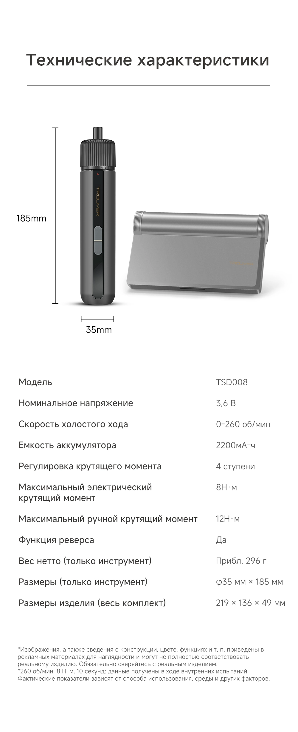- Размеры: 185 x 35 x 35 мм (только инструмент)