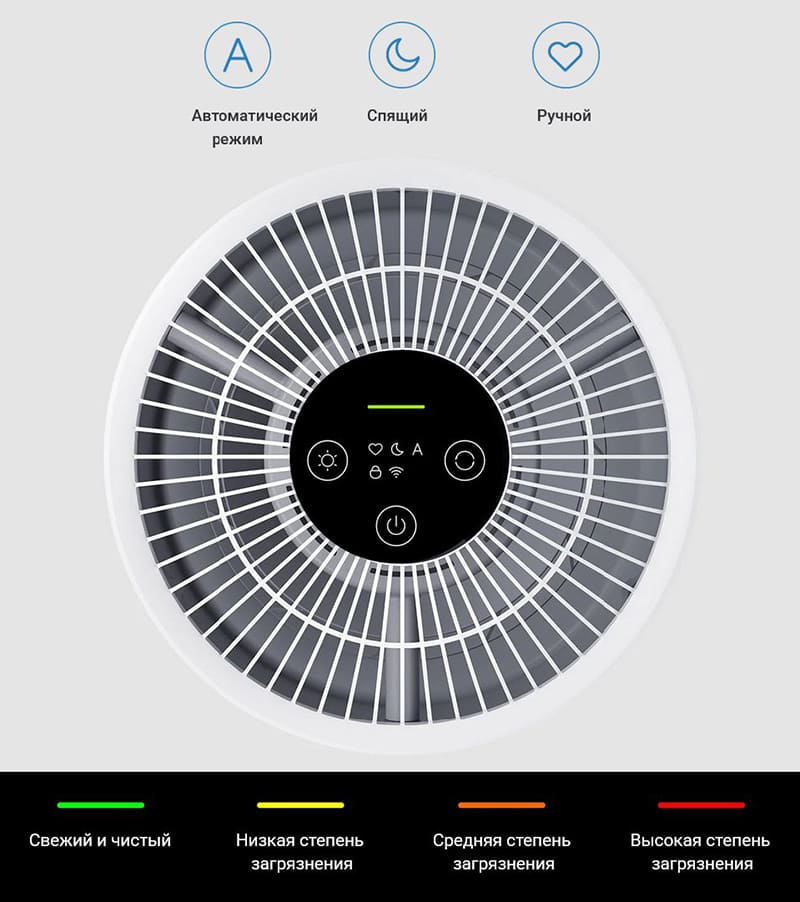 Интуитивно понятные сведения о качестве воздуха в помещении передаются с помощью четырехцветного индикатора. Настраивайте параметры очистки простыми сенсорными кнопками согласно своим потребностям в очистке воздуха.