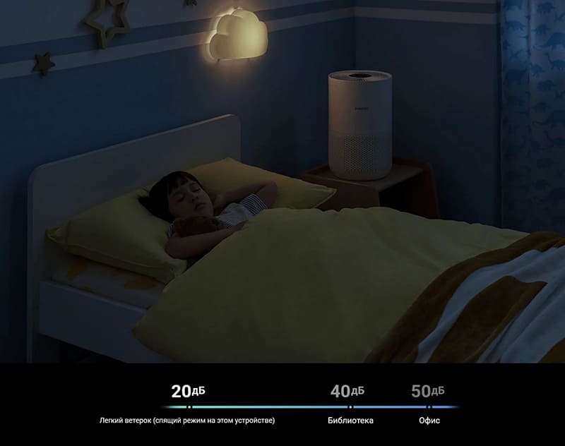 Спящий режим с низким уровнем шума 20 дБ позволяет отключить подсветку дисплея. Наслаждайтесь крепким сном без ночных пробуждений.