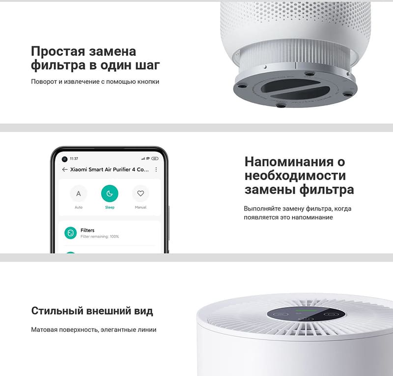 Очиститель воздуха Xiaomi Smart Air Purifier 4 Compact идеально сочетает компактность и высокую производительность, что позволяет использовать его в самых разных помещениях без ущерба для пространства. Несмотря на свои небольшие габариты, очиститель обеспечивает стабильную подачу чистого воздуха с показателем CADR 230 м³/ч и 360-градусной циркуляцией, эффективно освежая воздух в комнате..jpg)