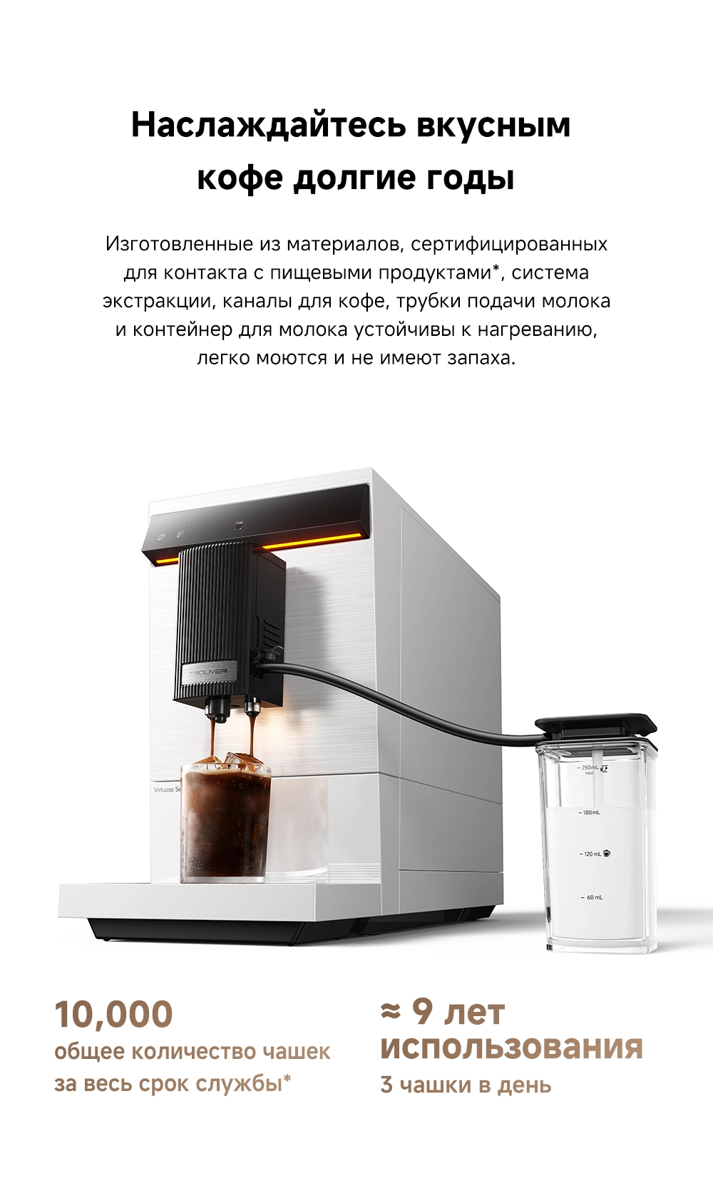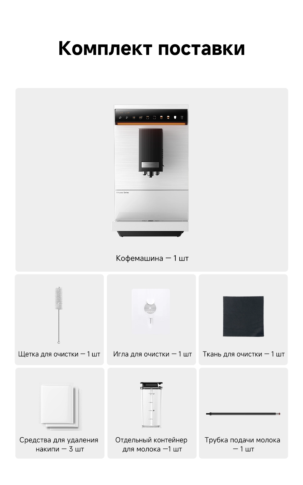 - Программы приготовления: эспрессо, лунго, американо, капучино, латте макиато, горячее молоко