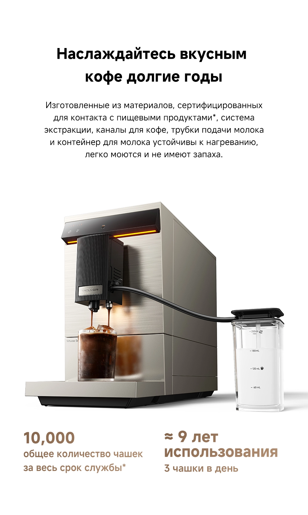 - Программы приготовления: эспрессо, лунго, американо, капучино, латте макиато, горячее молоко