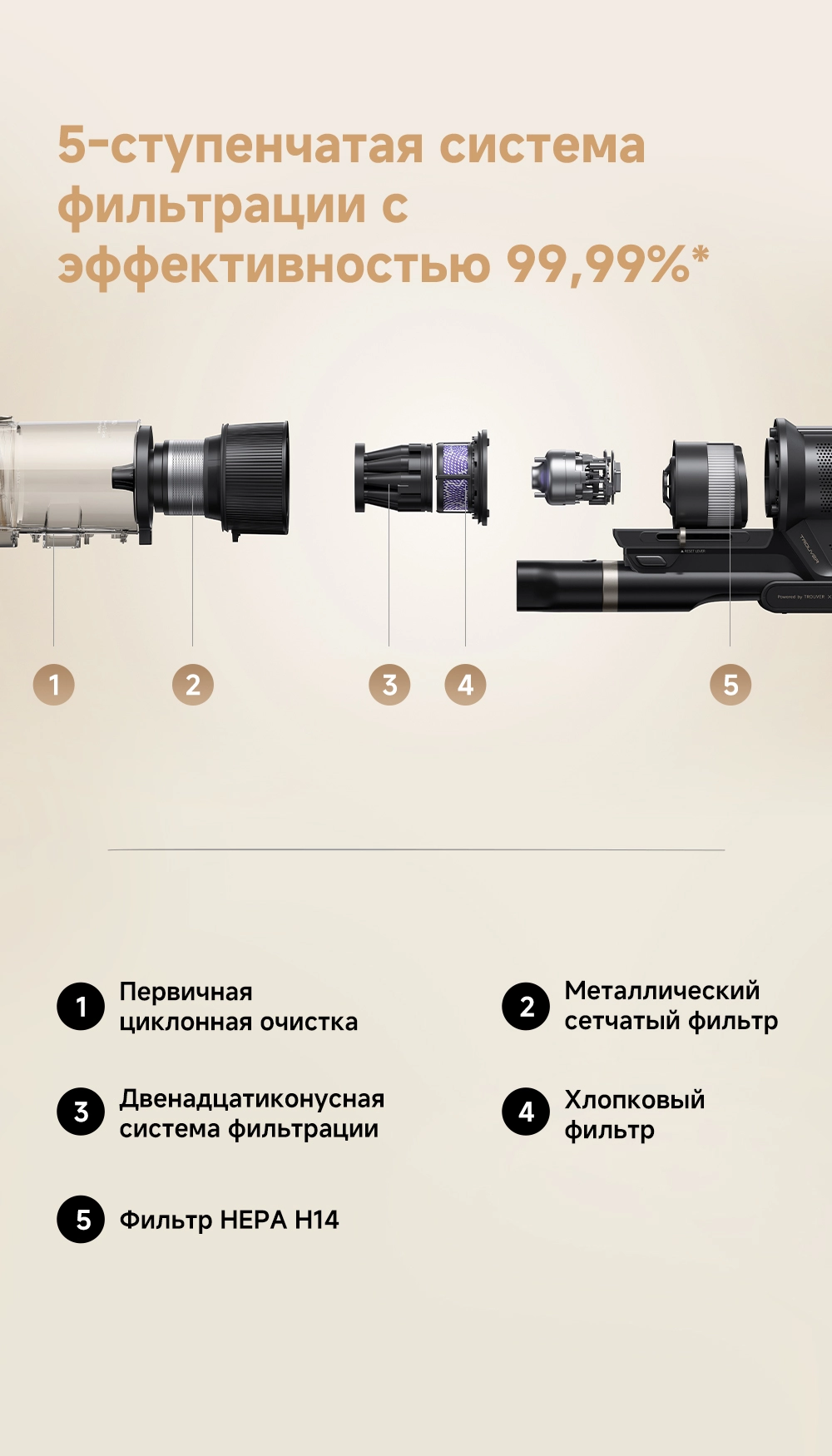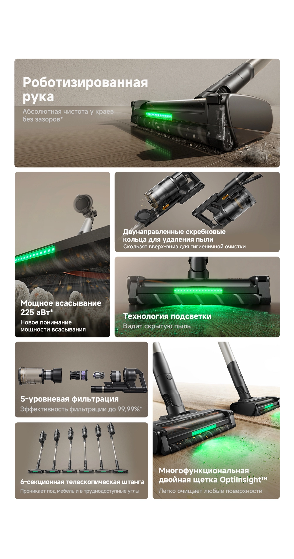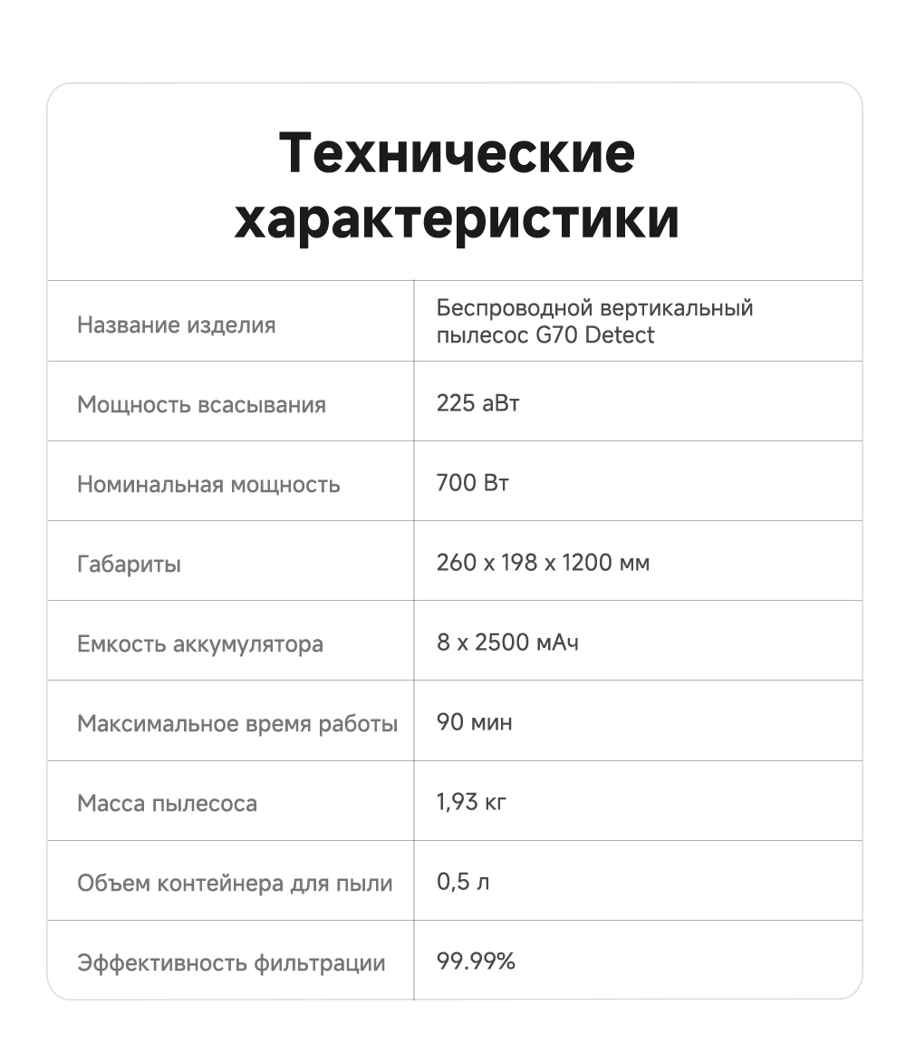 - Особенности: высокая мощность всасывания 225 аВт. 6-секционная телескопическая штанга регулируется под нужную длину. Лёгкий вес: 1.93 кг. 5-уровневая фильтрация с эффективностью 99.99%