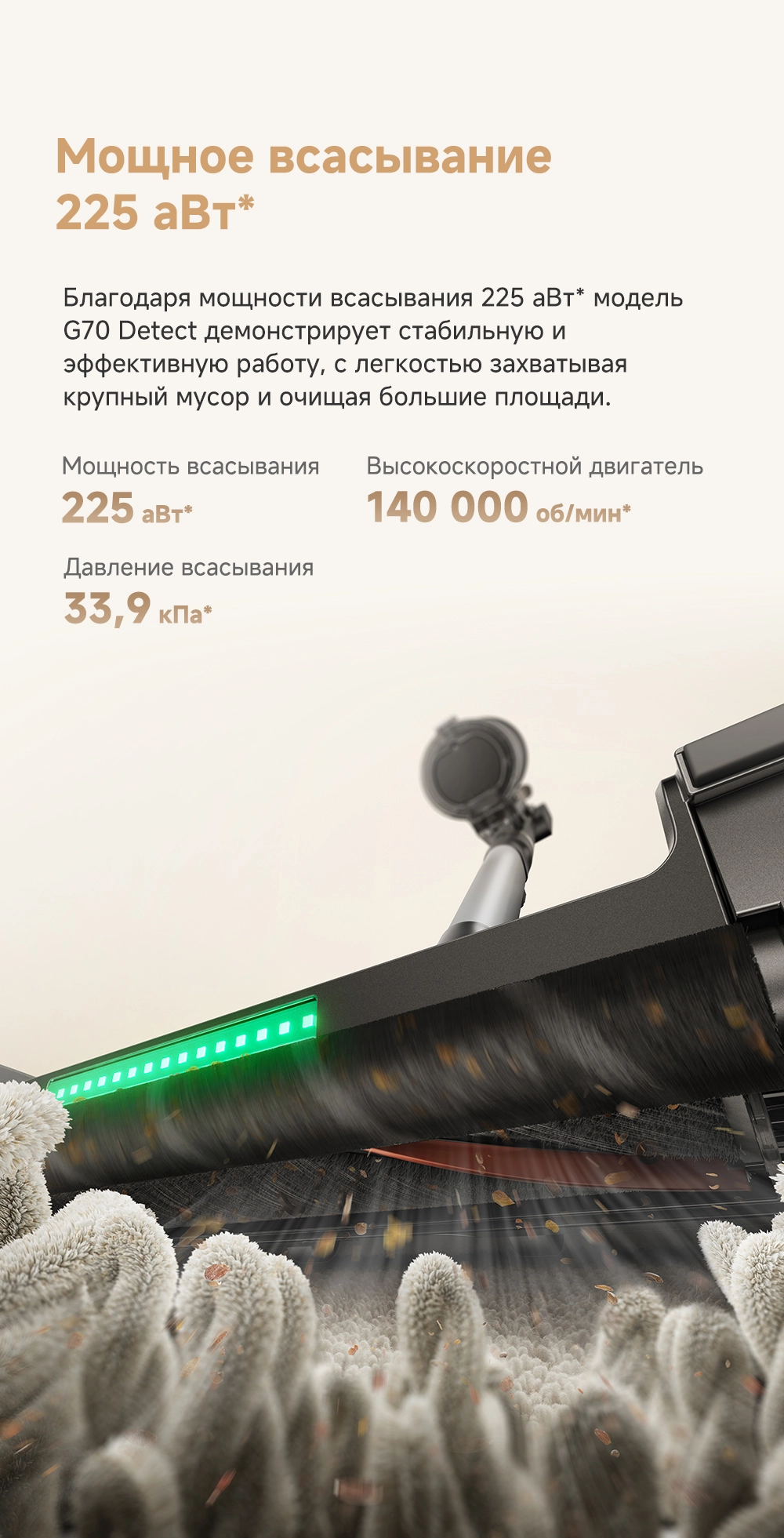 - Мощность всасывания: 225 аВт