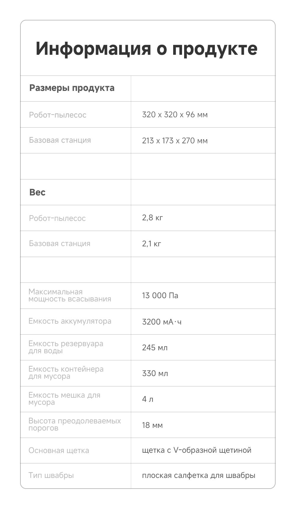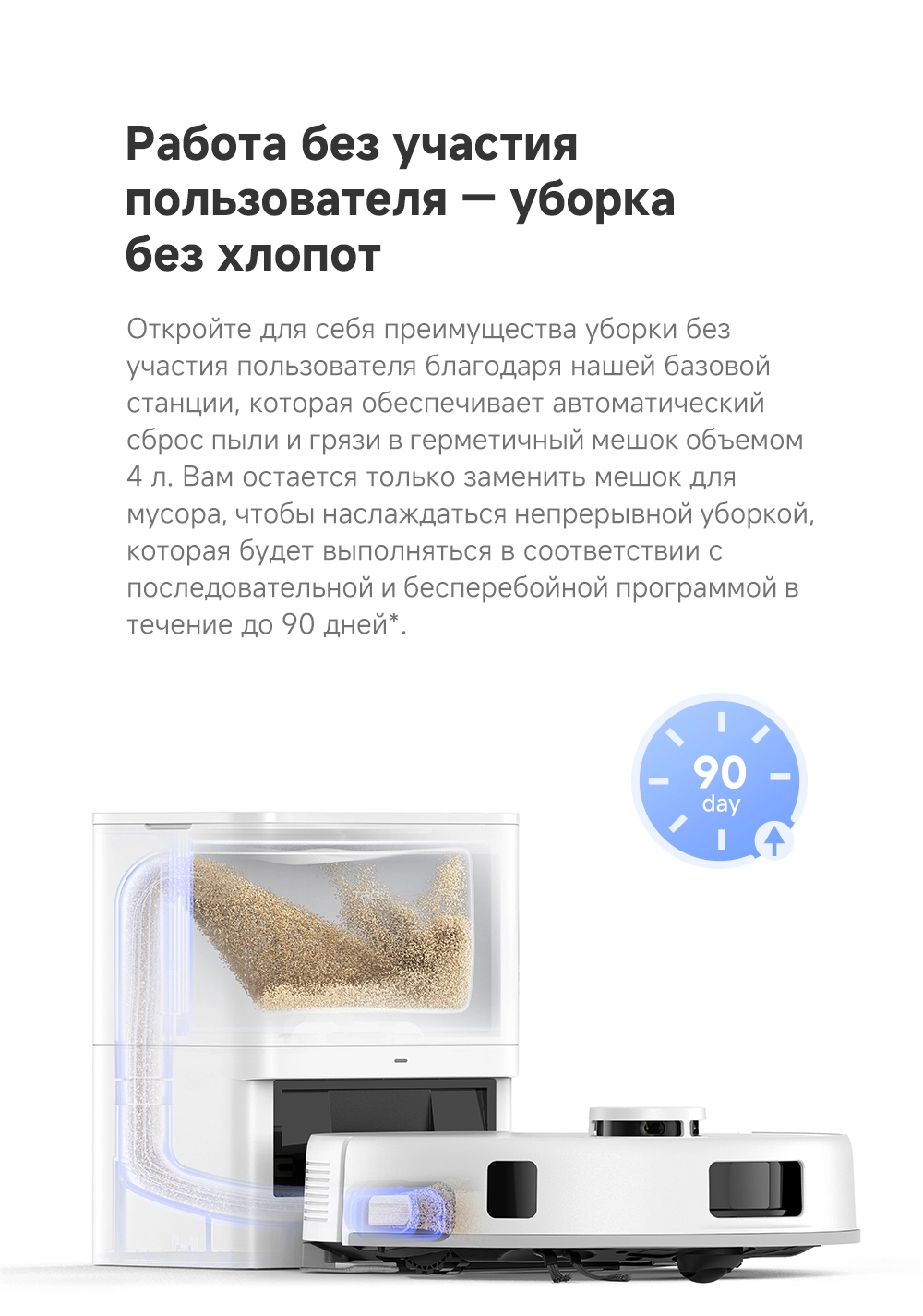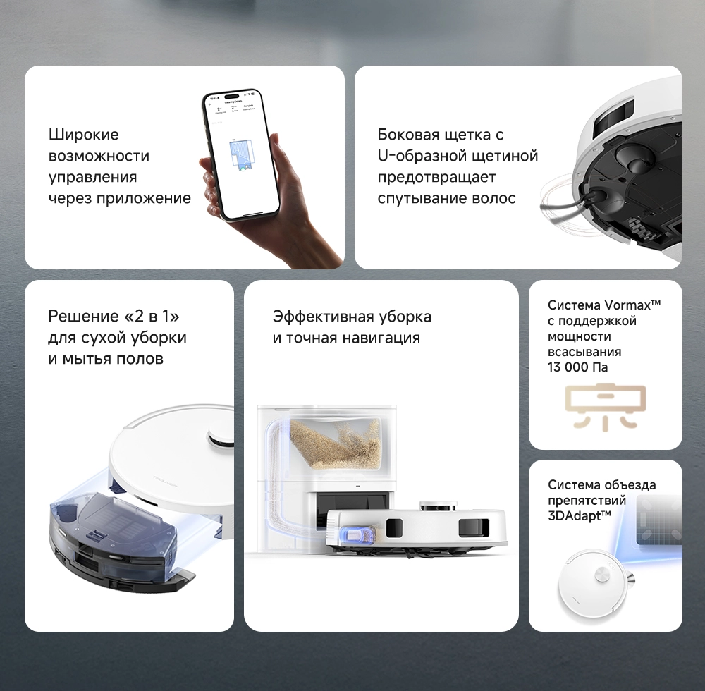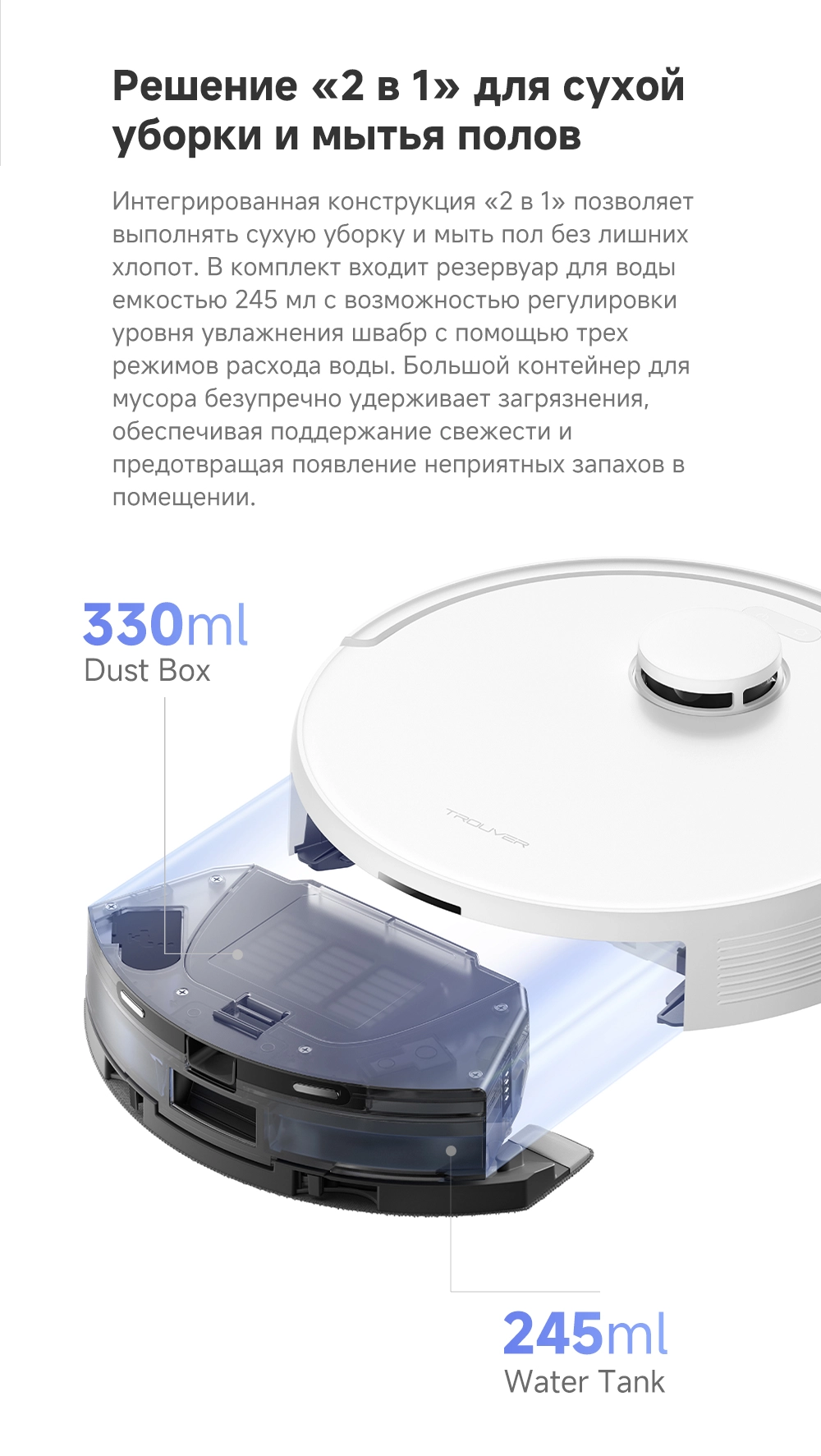 - Описание: моющий робот-пылесос с функцией автоматической самоочистки. Решение 2 в 1 для сухой уборки и мытья полов. Интеллектуальная технология Pathfinder
