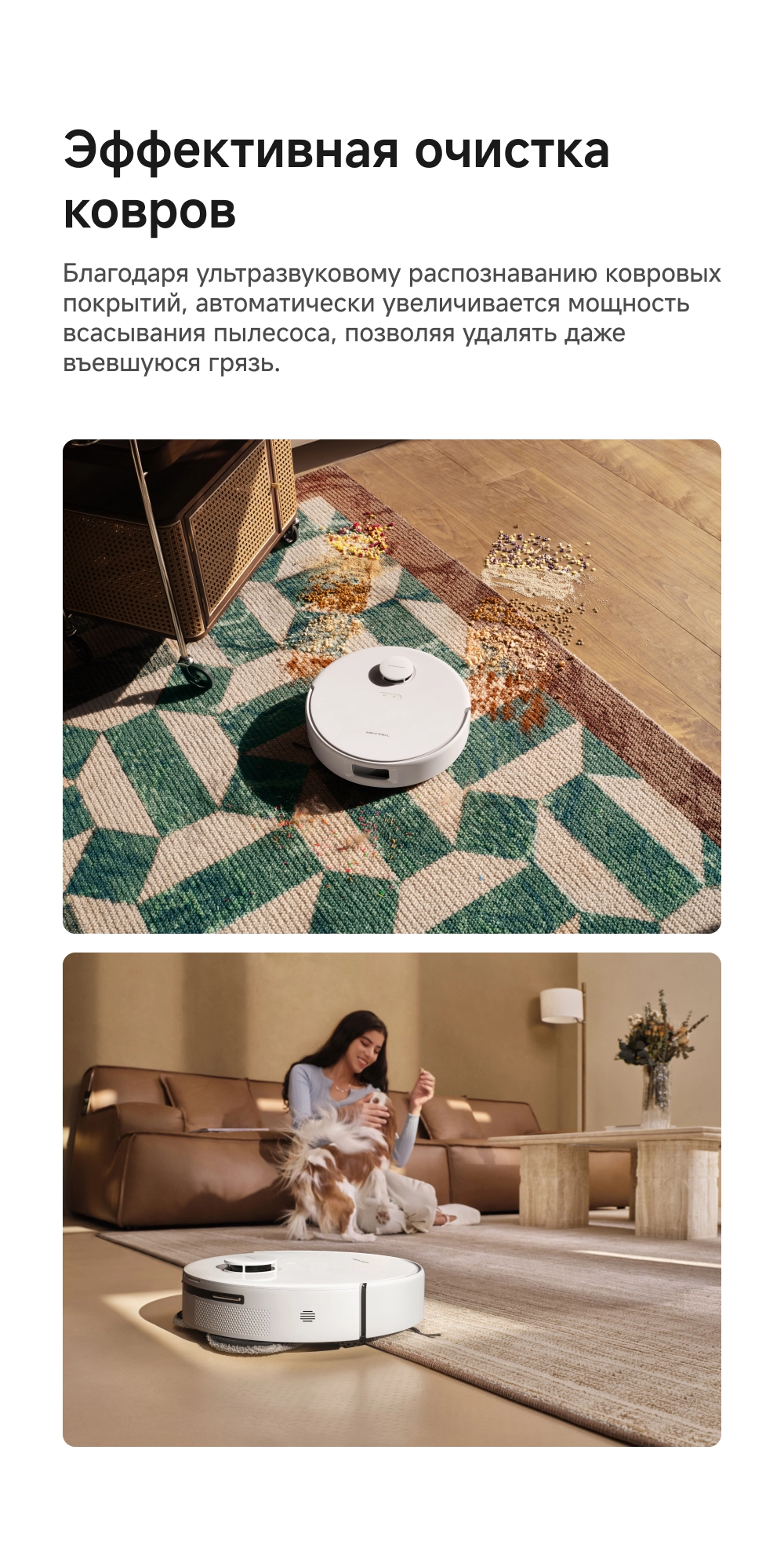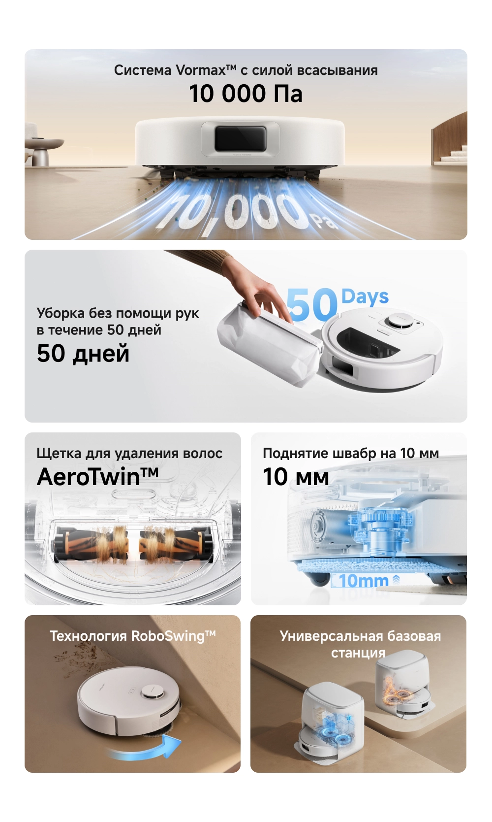 - Описание: робот-пылесос с автоматической очисткой швабр. Интеллектуальная стратегия уборки. Повышенная эффективность очистки и устранение проблемы наматывания волос