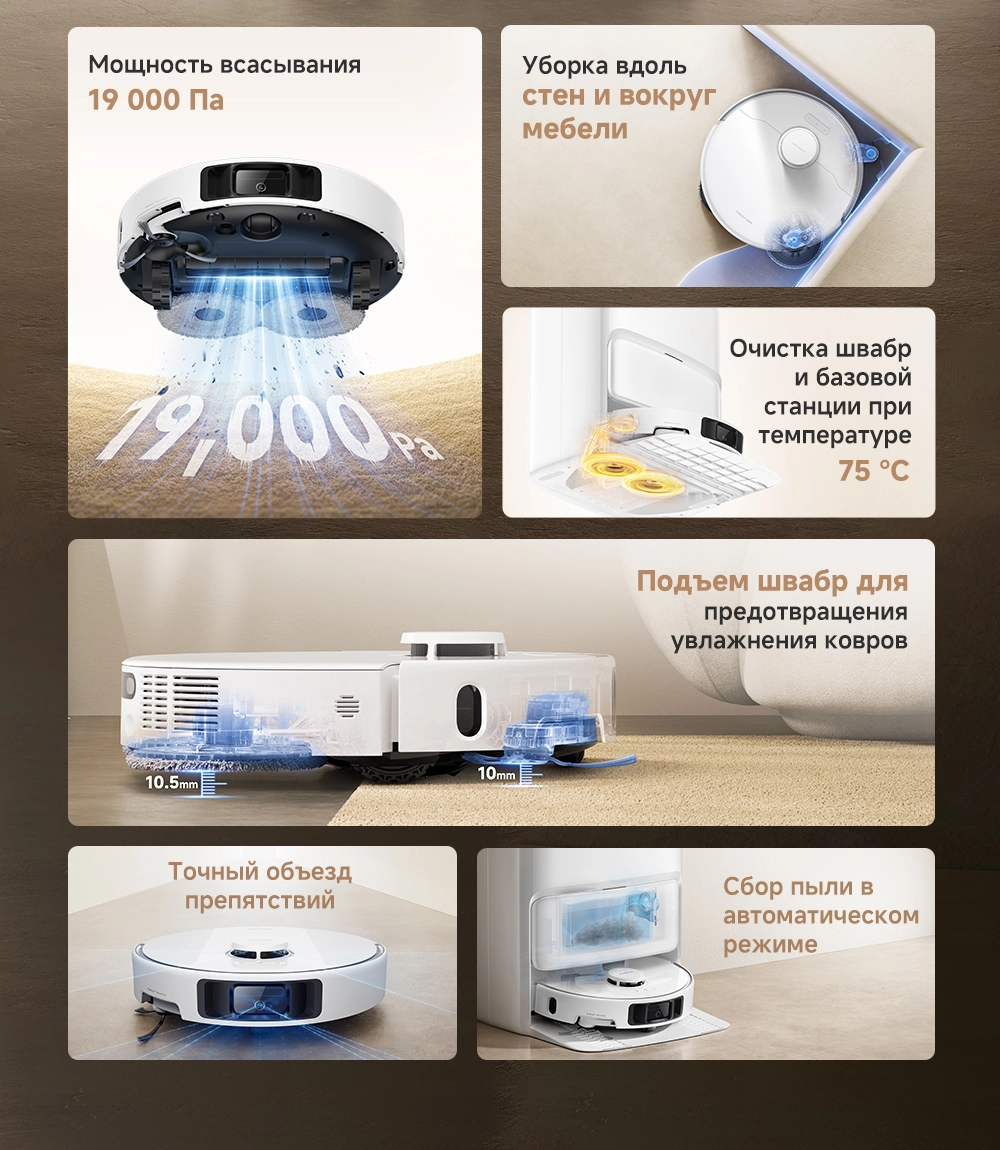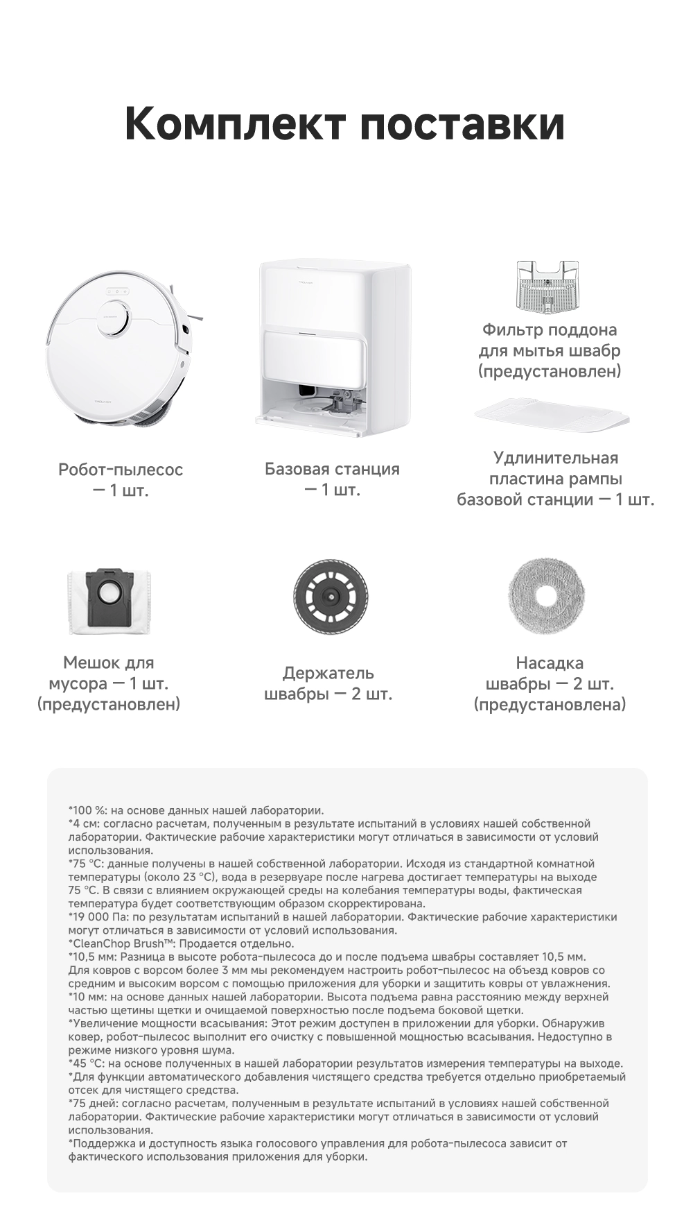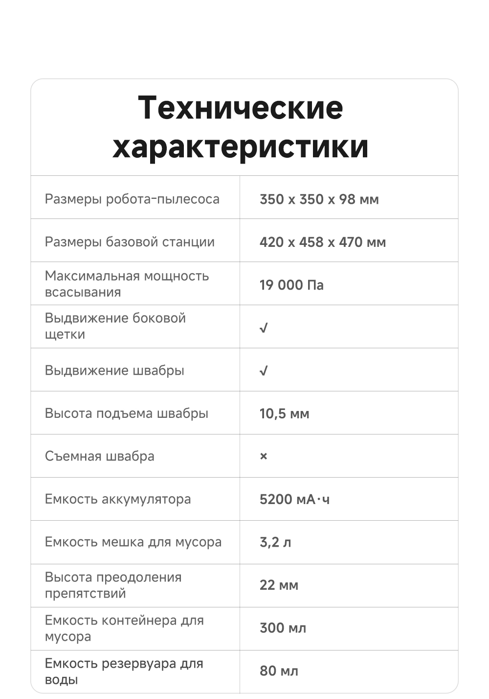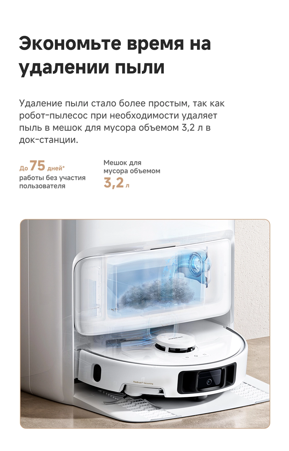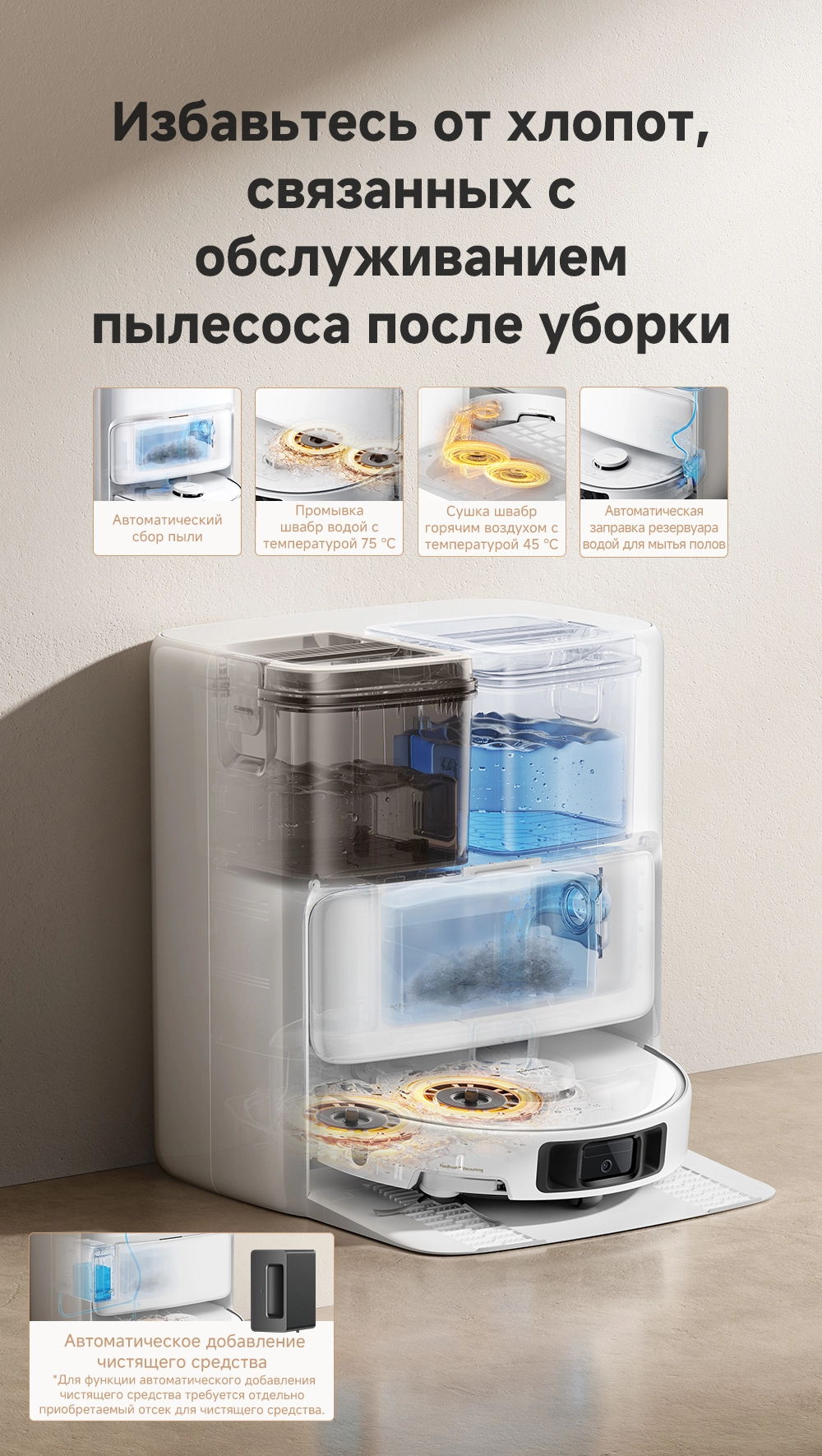 - Описание: Моющий робот-пылесос с функциями автоматического опустошения и автоматической очистки швабр