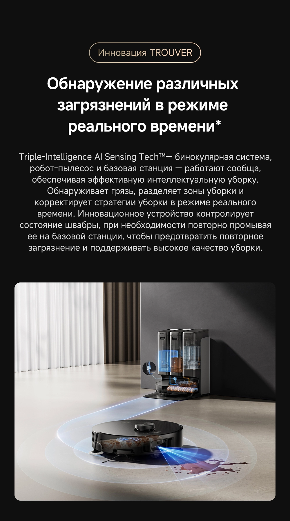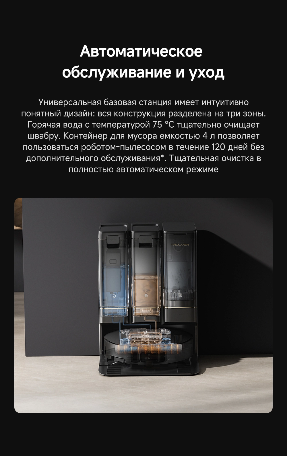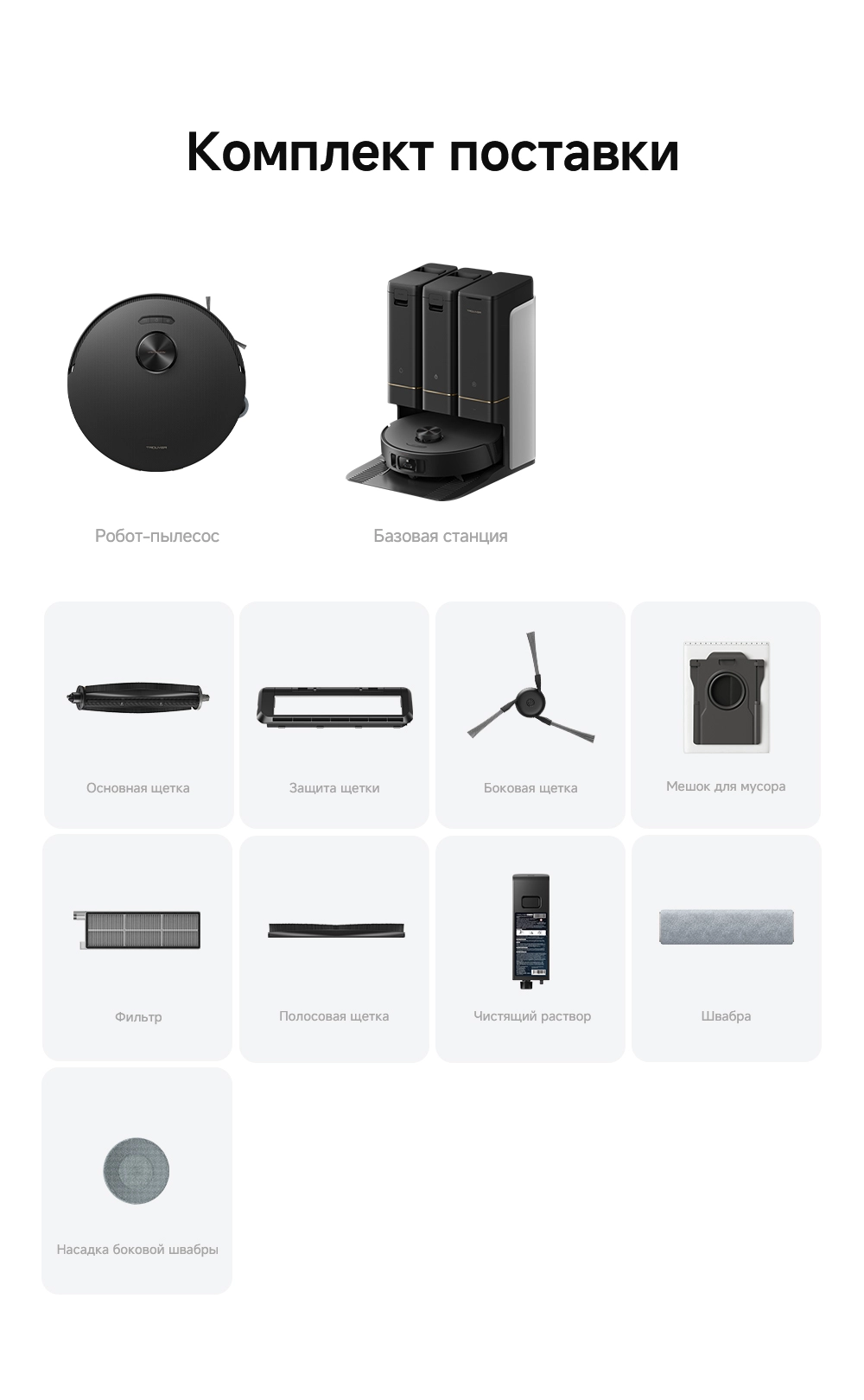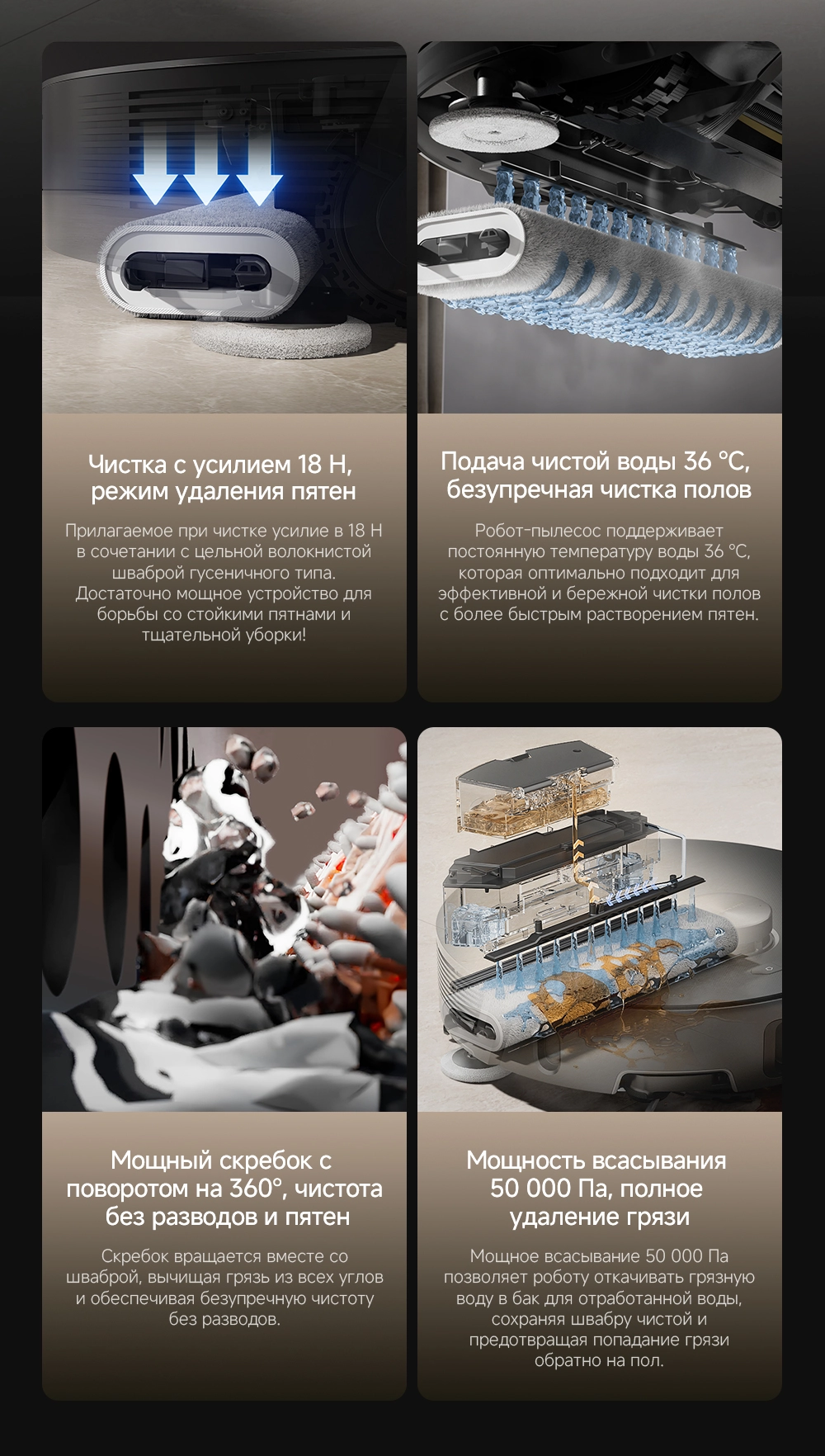- Описание: Моющий робот-пылесос с функциями автоматического опустошения и автоматической очистки швабр
