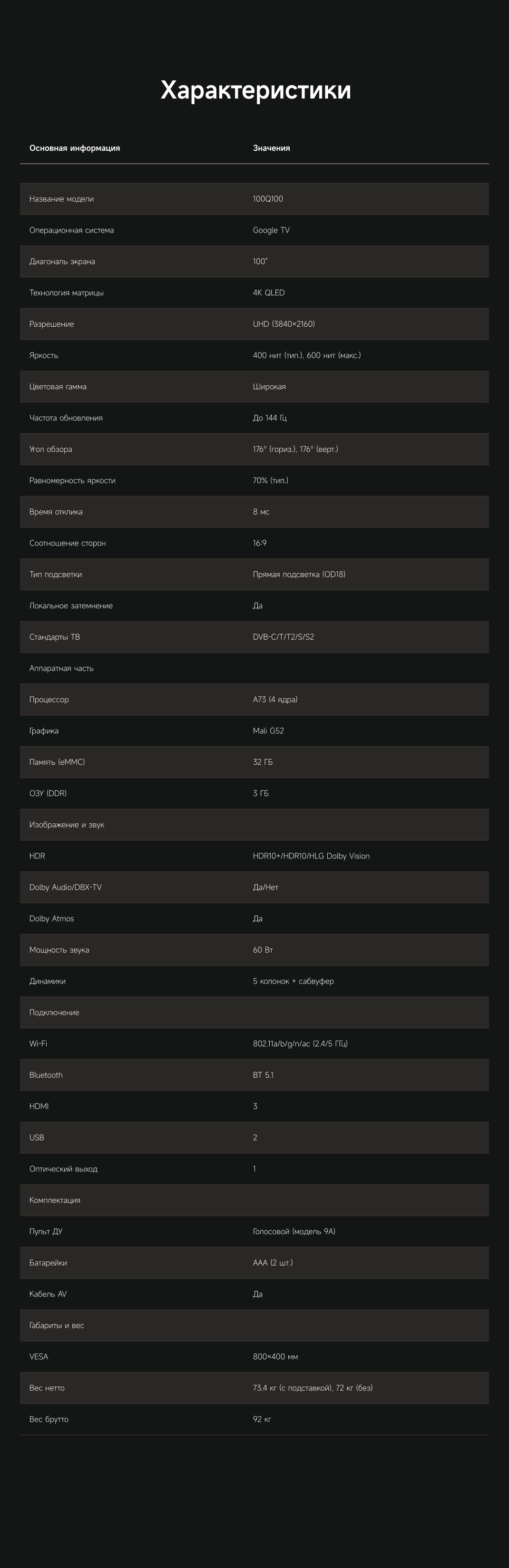 Телевизор Dreame Mega QLED 4K TV 100Q100 100″